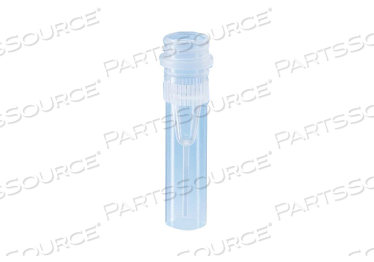 Микропробирка с винтовой крышкой, с юбкой на дне, с насечками, без застежки, без печати. Соответствует требованиям IATA