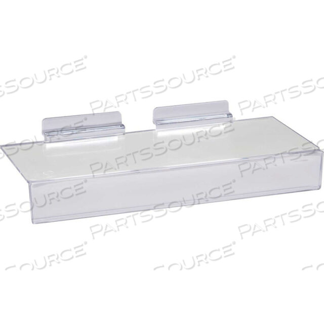 ПОЛКА ДЛЯ ОБУВИ ИЗ ЛИТОВОГО СТИРОЛА 10W X 4D С ОТРЕЗАНИЕМ ДЛЯ ВЫВЕСКИ — ПРОЗРАЧНАЯ