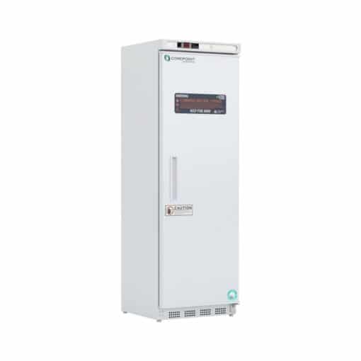 Product Description Corepoint Scientific White Diamond Series Natural Refrigerant Flammable Storage Freezer 14 Cu. Ft. Capacity One solid swing door, right hinged Microprocessor temperature controller Digital temperature display with sample simulated probe Audible and visual high and low temperature alarms Remote alarm contacts Adjustable operating temperature range: -15C -25C Six fixed shelves Keyed door lock Magnetic door gasket for positive seal Leveling legs Probe access port (3/8) Powder coat exterior High density urethane foam cabinet and door insulation HFC-free refrigerant (R290), foam insulation and packaging Three year parts and labor warranty Exterior dimensions: 23 5/8 W x 24 3/8 D x 73H Note: This unit must have 4 clearance on sides and back for adequate ventilation Manual defrost 115V, 60 Hz, 1.96 Amps, ½, HP UL/C-UL listed Shipping weight: 185 lbs.