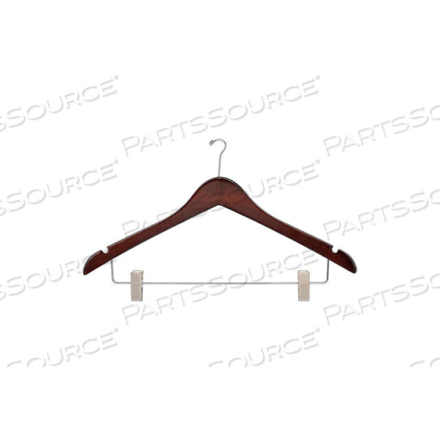 17 ДЕРЕВЯННАЯ ВЕШАЛКА ДЛЯ ЖЕНСКОГО КОСТЮМА/ЮБКИ, МИНИ-КРЮЧОК, ОРЕХ С ХРОМИРОВАННОЙ ФУРНИТУРОЙ, 100 ШТ./КОРОБКА