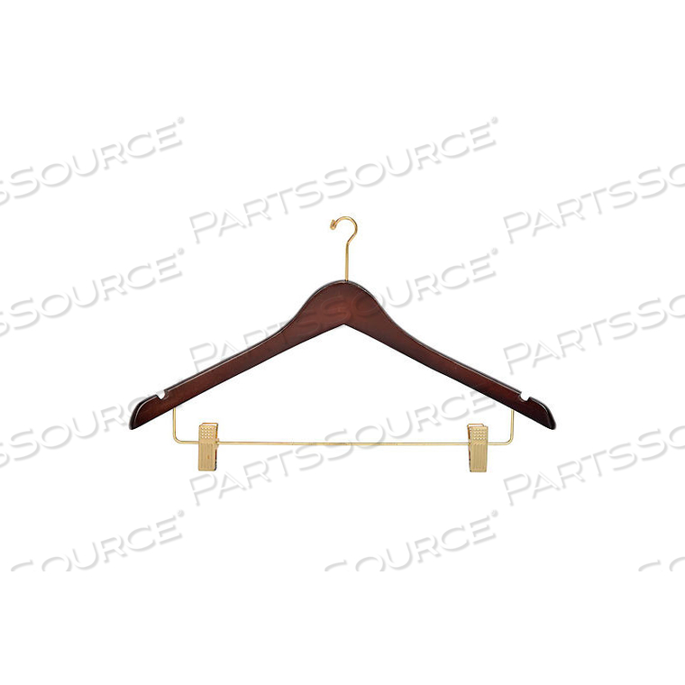 17 ДЕРЕВЯННАЯ ВЕШАЛКА ДЛЯ ЖЕНСКОГО КОСТЮМА/ЮБКИ, МИНИ-КРЮЧОК, ОРЕХ С ЛАТУННОЙ ФУРНИТУРОЙ, 100 ШТ./КОРОБКА