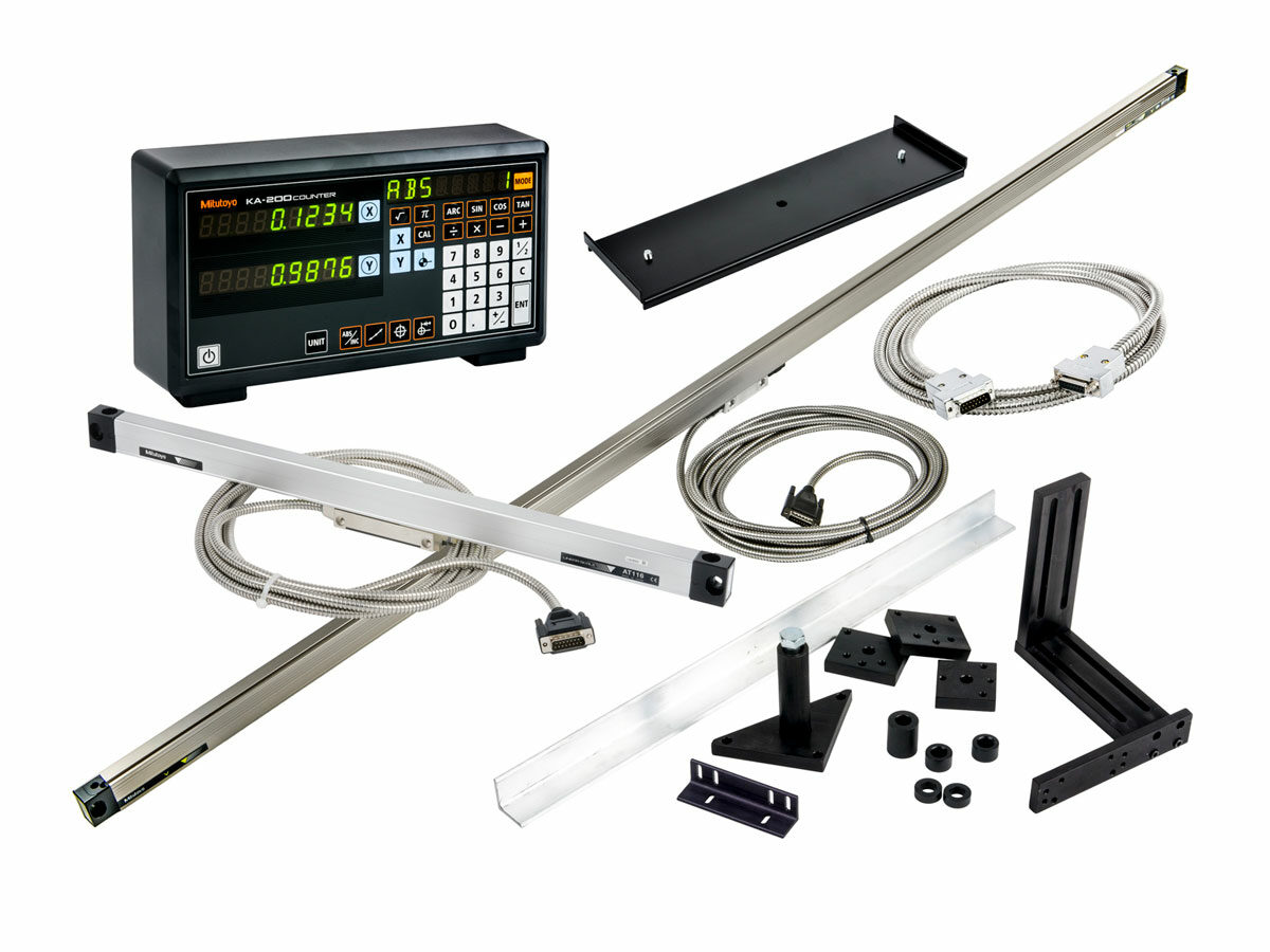 - Includes KA-200 digital counter, AT715/AT103 Z-axis scale, AT116 X-axis scale, bracket kit, counter stand, counter tray and extension cable in kits with 60-in. X-axis and longer