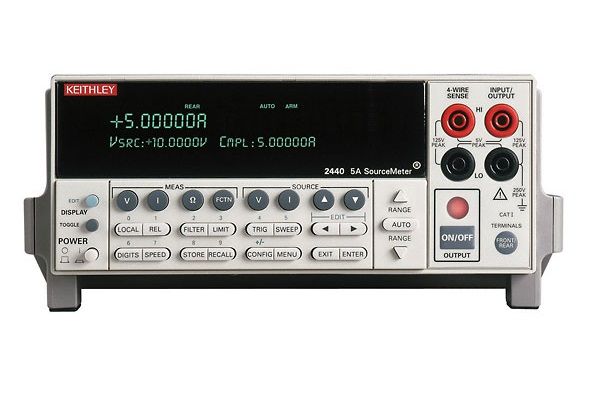 Keithley SourceMeter 2440 разработан специально для тестовых приложений, требующих тесной связи источников и измерений. Он обеспечивает точный источник напряжения и тока, а также возможности измерения. Каждый прибор SourceMeter представляет собой как высокостабильный источник питания постоянного тока, так и настоящий мультиметр приборного класса с точностью до 5 1/2 разряда. Характеристики источника питания включают низкий уровень шума, точность и считывание.