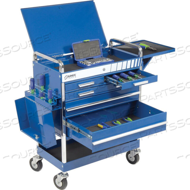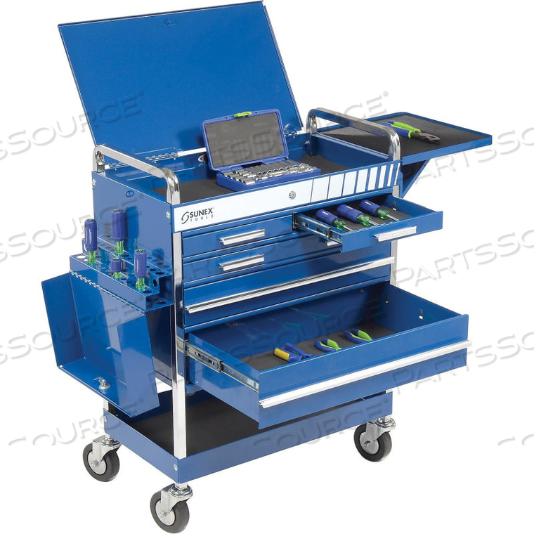 27 ПРОФЕССИОНАЛЬНАЯ СИНЯЯ ТЕЛЕЖКА ДЛЯ ИНСТРУМЕНТОВ С 5 ЯЩИКАМИ И ЗАМКОМ ВВЕРХУ