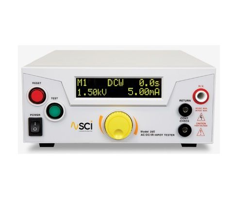 The SCI 297 is an AC/DC hipot, with insulation resistance testing. It has an AC output of 5kv (12mA) and DC output of 6kV (5mA). Part of the Slaughter 290 series, these testers are designed to simplify every aspect of safety testing for operators of all comfort levels. The 290 series includes the most intuitive user interface in the industry and won»t take up too much space on the production line. With multiple memories and an optional USB interface, users can quickly perform tests on a variety of DUT»s from the front panel or with a PC.