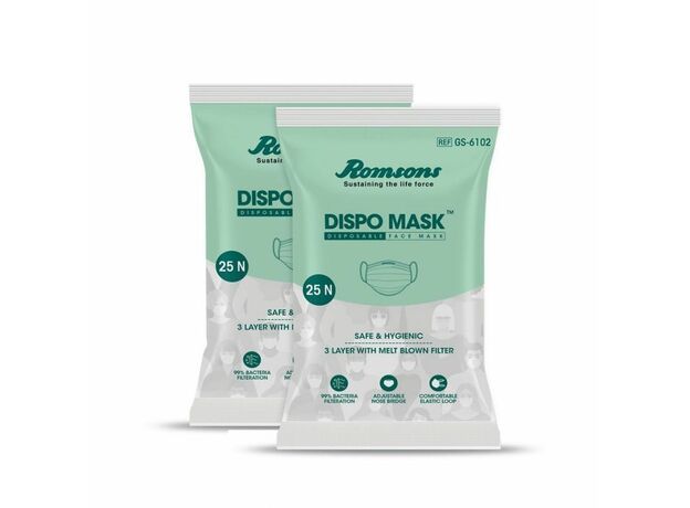Dispo Masks — это одноразовые защитные маски, подходящие для одноразового использования. Они обеспечивают максимальную защиту и комфорт. Они изготовлены из воздухопроницаемого внутреннего и внешнего нетканого слоя с фильтрующим слоем, полученным методом выдувания из расплава посередине, что обеспечивает эффективность фильтрации 99%.
