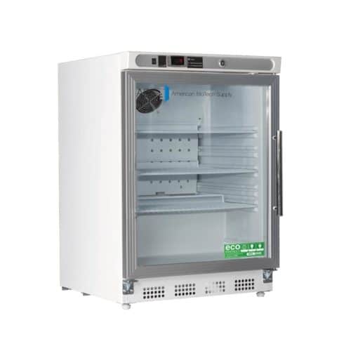 Product Description The Premier Built In Undercounter Refrigerators feature a microprocessor temperature controller and display, which allows for precise temperature control, verification and recovery versus mechanical style thermostats. The Built-In models are designed with a front breathing ventilation system, eliminating the need for clearance around the top and sides of the unit, enabling the user to incorporate these units into cabinets and other applications where free space is limited. Environmentally friendly, natural hydrocarbon (HC) refrigerants (not containing hydrofluorocarbons) vastly reduce global-warming potential (GWP) while meeting new EPA/SNAP mandates and UL, ASHRAE compliance guidelines. Details THREE SHELVES (TWO ADJUSTABLE/ONE FIXED) WITH GUARD RAIL ON BACK TO PREVENT PRODUCT FROM PUSHING AGAINST BACK WALL BACK WALL EVAPORATOR COVER FORCED DRAFT CIRCULATION KEYED DOOR LOCK MAGNETIC DOOR GASKET FOR POSITIVE SEAL LEVELING LEGS LED INTERIOR LIGHT HFC-FREE REFRIGERANT (R600A), FOAM INSULATION AND PACKAGING TWO YEAR PARTS AND LABOR WARRANTY, PLUS AN ADDITIONAL THREE YEAR COMPRESSOR PARTS ONLY WARRANTY Specifications EXTERIOR DIMENSIONS: WIDTH: 23 ¾, DEPTH: 25 ½, HEIGHT: 33 CYCLE DEFROST 115V, 60 HZ, 1.74 AMPS, 1/8 HP UL/C-UL LISTED ENERGY STAR CERTIFIED SHIPPING WEIGHT: 150 LBS. Controller MICROPROCESSOR TEMPERATURE CONTROLLER DIGITAL TEMPERATURE DISPLAY AUDIBLE AND VISUAL HIGH AND LOW TEMPERATURE ALARMS REMOTE ALARM CONTACTS 2 PROBES, 1 IN AIR AND 1 IN GLYCOL BOTTLE ADJUSTABLE OPERATING TEMPERATURE RANGE: 1C TO 10C