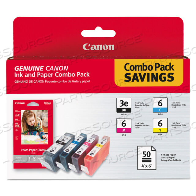 4479A292 (BCI-3E/BCI-6) КОМБИНИРОВАННЫЙ ЧЕРНИЛА/БУМАГА, РЕСУРС 280 СТРАНИЦ, ЧЕРНЫЙ/ГОЛУБОЙ/ПУРПУРНЫЙ/ЖЕЛТЫЙ