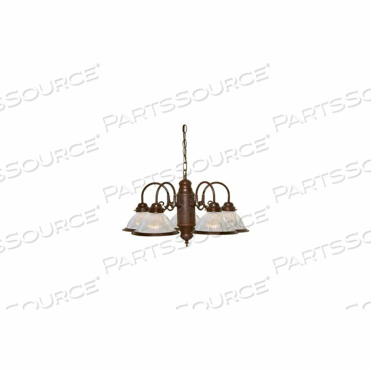 5 ЛАМП — 22 — ЛЮСТРА — С ПРОЗРАЧНЫМИ РЕБРИСТЫМИ АББРААМИ СТАРАЯ БРОНЗА
