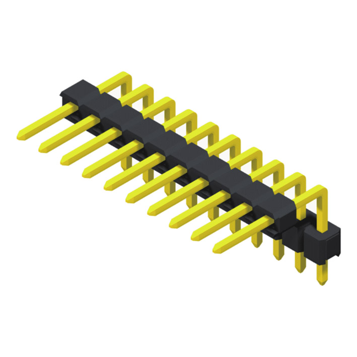 Штыревой разъем 2,54 мм, 1 ряд, высота = 2,5 мм, стек под прямым углом, тип U