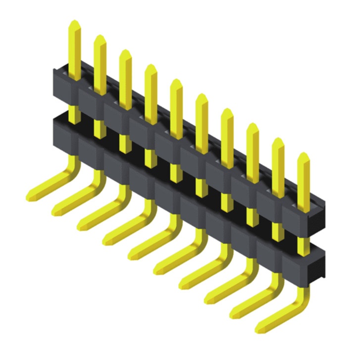 Штыревой разъем 2,0 мм, 1 ряд, высота = 2,0 мм, прямоугольный стек