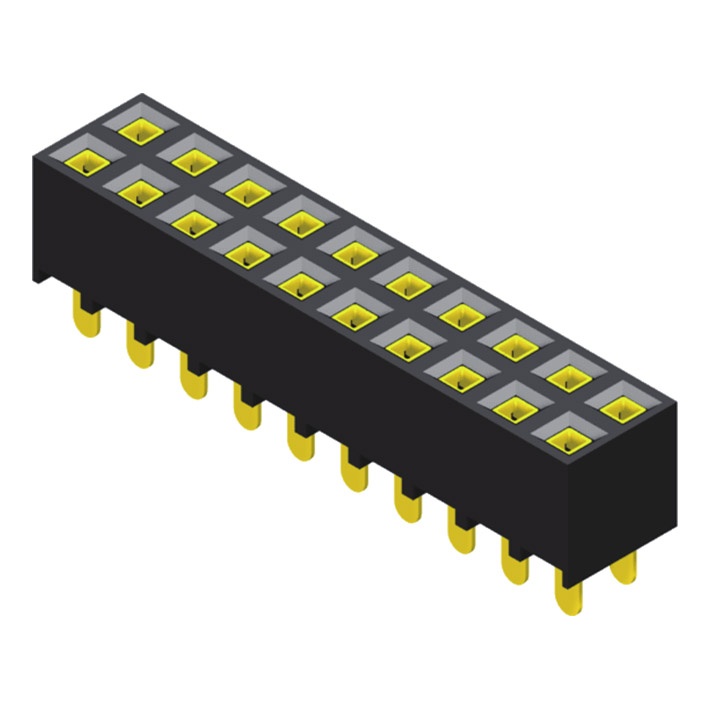 Женский коллектор 2,54 мм, 2 ряда, высота = 6,8 мм, прямой тип