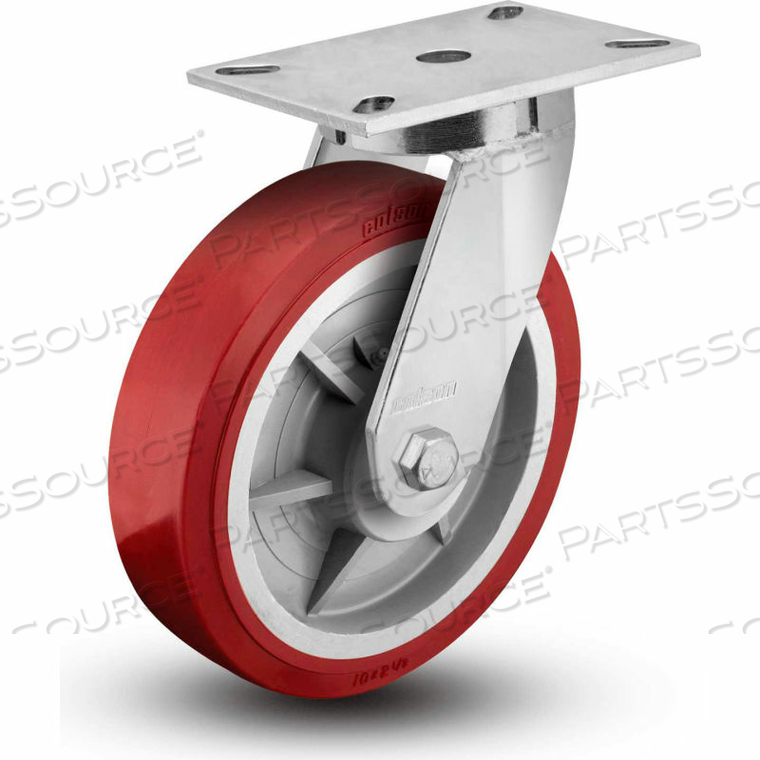 РОЛИКОВАЯ ОПОРНАЯ КОЛОНКА С ПОВОРОТНОЙ ПЛАСТИНОЙ СЕРИИ 7, ПОЛИУРЕТАНОВАЯ, ДИАМЕТР 10, 1200 ФУНТОВ. CAP.