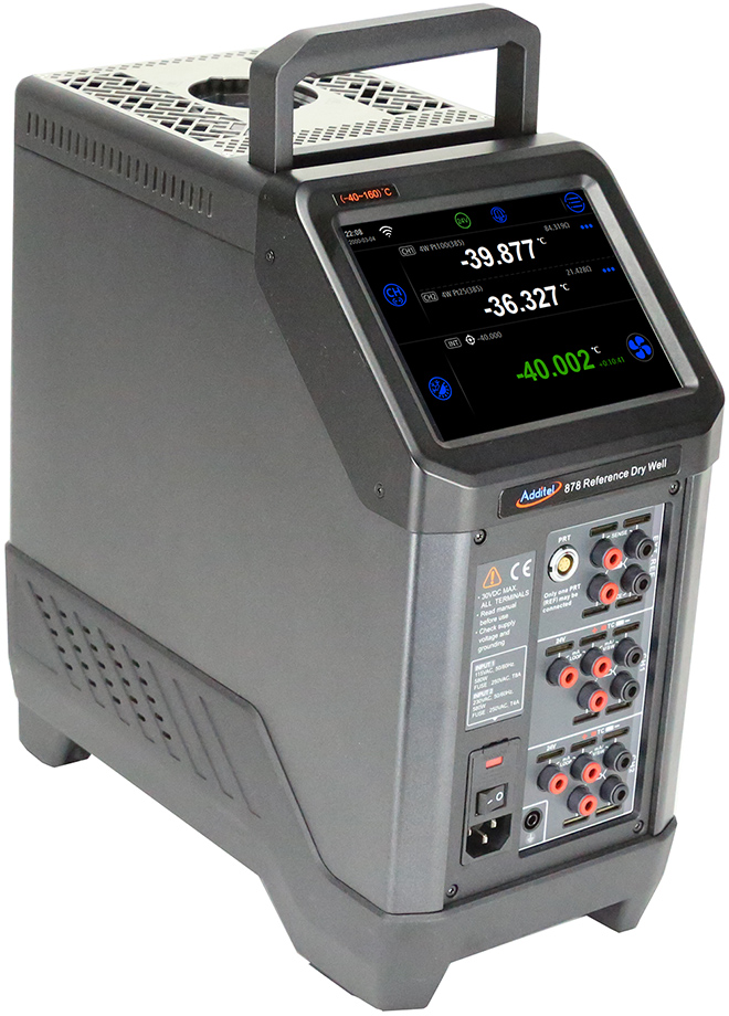 Сухоблочный калибратор Additel ADT878 предлагает на выбор три модели в диапазоне температур от -40 до 1292°F. Опция Process Calibrator добавляет внешний эталонный вход, двухканальное считывание показаний проверяемого оборудования и полный набор возможностей, помогающих во всем: от измерения датчиков температуры до калибровки термопар, самостоятельной калибровки эталонной лунки и настройки преобразователей HART. В стандартную комплектацию каждого устройства входит большой сенсорный дисплей и двухзонное управление.