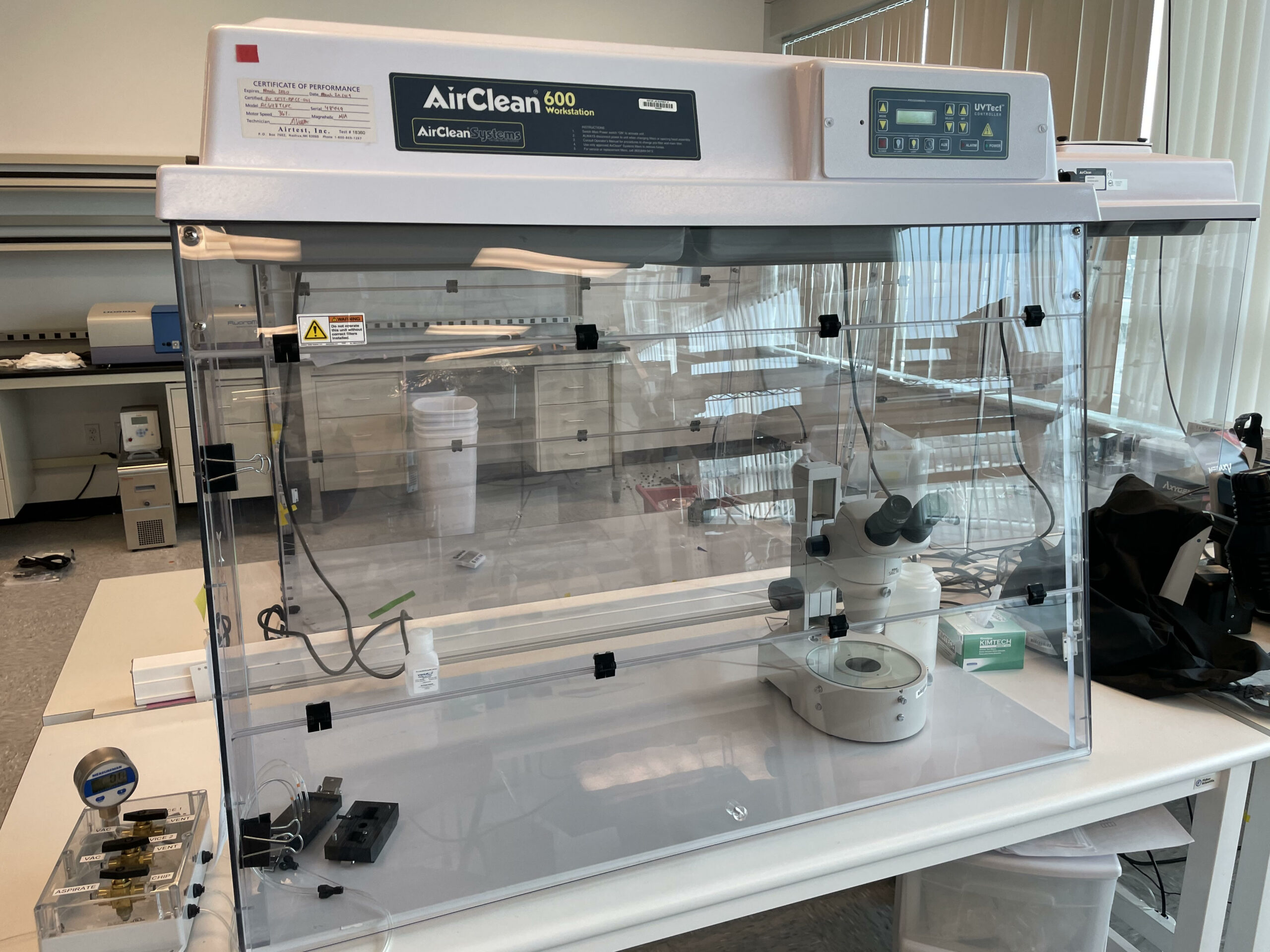 AirClean Systems AC600 Series PCR Workstations combine ISO 5 HEPA-filtered air with UV light irradiation for the ultimate DNA/RNA manipulation and amplification work area. Cross-contamination during amplification of DNA and RNA can lead to results that are inaccurate, costing the lab technician valuable time and reagents. PCR Workstations minimize this risk by keeping airborne contaminants away from samples and irradiating work surfaces and tools between amplifications.