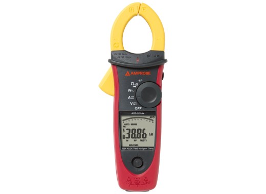 The Amprobe ACDC-52NAV is a True-RMS AC/DC current and power clamp, which doubles as a multimeter for measuring among others voltage, resistance and capacitance. It allows for easily verifying deployment of specialized tools with useful features such as measurement modes for individual harmonics, inrush current and the phase angle. The device is built sturdily as it is rated to withstand drops of up to 1.2 metres and it is certified to measure voltages of up to 1000 V and 600 A of current. A major advantage of this clamp is its ability to measure DC power, a rather unique feature among current clamps. Specifications Measurement specifications Voltage DC 0.01 — 1000 V ± (0.7% + 2) Voltage AC 0.01 — 1000 V ± (1.0% + 5) @ 50 ~ 500 Hz Current DC 0.01 — 600 A ± (1.5% + 5) Current AC 0.10 — 600 A ± (2% + 5) @ 50 ~ 400 Hz Frequency 20.00 Hz — 10 kHz ± (0.5% + 3) Inrush current 0.01 — 600 A ± (2.5% + 5) Active power AC/DC 0.001 — 600 kW see manual Resistance 0.001 Ω — 100 kΩ ± (1.0% + 5) Capacitance 0.001 — 4000 μF ± (1.9% + 8) True RMS Yes Safety CAT IV 600 V