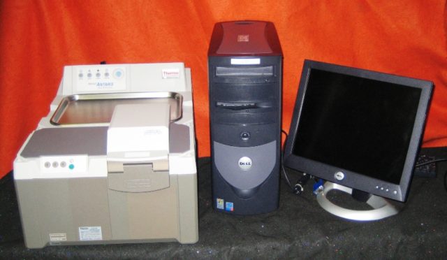 Refurbished Thermo Nicolet Antaris FT-NIR (Near-IR) analyzer (Thermo p/n 912a0467) for solid, powder and tablet analysis. The system includes standard tablet transmission module and integrating sphere with greater than 95% collection efficiency, Result Software Suite for Antaris Rev.4, ValPro System Qualification for Antaris software Rev3, PC, and manuals.