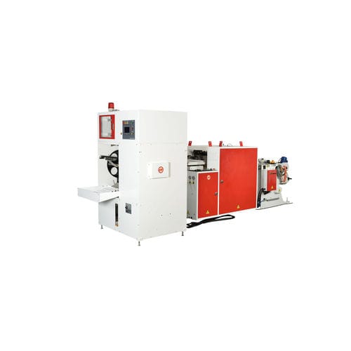 ОСОБЕННОСТИ Машина с двумя функциями: для поточного производства с экструдером или для рулонного производства в одной линии. Специально разработанный перемотчик бумажных гильз, оснащенный автоматическим ограничителем края перед перемоткой, обеспечивает аккуратное выравнивание и плотное прилегание изделий. Расстояние между линией уплотнения и линией перфорации можно свободно регулировать с помощью сенсорного экрана. Специально для пакетов со складками без складок (для пакетов со складками общая толщина четырех слоев не должна превышать допустимую толщину запечатывания). Основная режущая машина и перемоточное устройство с сервоприводом, скорость линии 160 м/мин и производственный цикл 400 шт./мин.