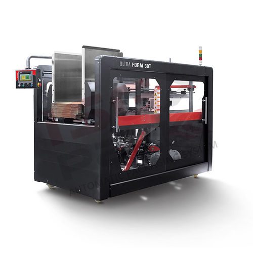 Высокоскоростной сборщик картонных коробок, мод. Ultra Form 30 T формирует коробки, подходящие для горизонтального наполнения и автоматического закрытия клапанов. Коробки вручную помещаются на вертикальное механизированное хранилище, чтобы они находились в правильном положении при захвате захватной головкой с присосками, установленными на механической руке. Скорость формования от 30 до 40 коробок в минуту. Электропневматические устройства позволяют формировать и складывать сейф в квадрат. Размеры коробок можно регулировать с помощью контроллера SIEMENS plc с сенсорным экраном. Машина оснащена защитными ограждениями, управляемыми микропереключателем. Коробка закрывается самоклеящейся лентой или системой термоклея Nordson мод. «Mesa». Технические характеристики Speed Former 30 T Электропитание: 380 В, 3 фазы, 50/60 Гц Влажность окружающей среды ≤ 90% Диапазон температур использования: от + 0 °C до + 40 °C Максимальный шум: 75 дБ Подача воздуха: ≥6 кгс/см2 Электрическая защита: IP 54 Клейкая лента: Крафт, полипропилен, ПВХ Стандартная Головка ленты: 50 — 75 мм Высота рабочего стола: 1040+50 мм Установленная мощность: от 1,6 до 3,4 кВт Производственная мощность: от 30 до 40 коробок/мин Емкость склада: 800 мм (80-90 ящиков в зависимости от толщины ящика)