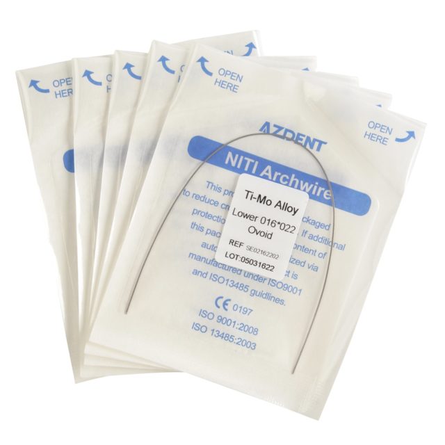 Titanium-Molybdenum alloy (Ti-Mo Alloy) archwires were developed to have properties between stainless steel and Ni-Ti.It is widely used as an orthodontic archwire for performing an orthodontic mechanotherapy.When NITI wire, TMA wire,and austenitic stainless steel wire were compared, it was found that TMA showed the greatest plastic strain and springback, followed by NITI and stainless steel.The composition is: 79% Ti (Titanium), 11% Mo (Molybdenum), 6% Zr (Zirconium), and 4% Sn (Tin).| Package: | 1 pc/Pack |