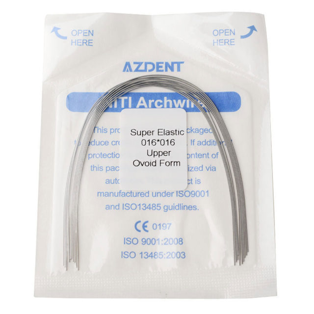 AZDENT Dental Orthodontic Archwire Niti Super Elastic Ovoid Form Rectangular 0.016 x 0.016 Upper 10pcs/Pack. Higher Elasticity with Lower Rigidity. Extra smooth finish reduces friction enabling teeth to move easily along archwire. Remains constantly active, reducing the number of archwire changes.