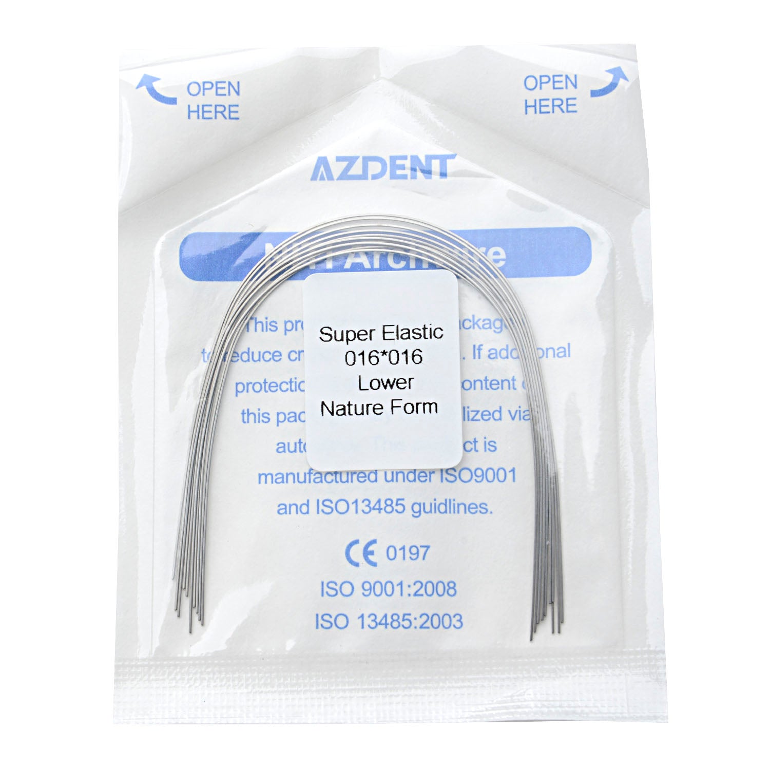 AZDENT Dental Orthodontic Archwires NiTi Super Elastic Natural Form Rectangular 0.016 x 0.016 Lower 10pcs/Pack. The natural curvature of the archwire is closer to oral cavity space, which will save the doctor»s time.