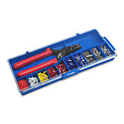 Комплект наконечников, включающий обжимной инструмент, набор наконечников и пластиковый кейс.