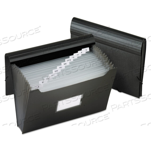 БОЛЬШОЙ ПАПКО-ПАПКА НА 13 КАРМАНОВ, 12 РАСШИРЕНИЙ, 13 СЕКЦИЙ, ЗАСТЕЖКА НА ЭЛАСТИЧНОМ ШНУРЕ, 1/12-ОБРЕЗНЫЕ ЯЗЫКИ, ФОРМАТ LETTER, ЧЕРНЫЙ