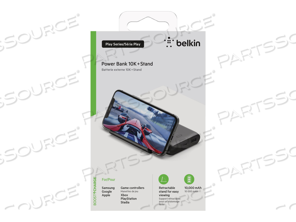 Эта мощная, персональная и портативная игровая установка позволяет вам заряжать ее во время игры. Power Bank BOOST CHARGE 10K + Stand Play Series обеспечивает ваше устройство более чем достаточным питанием, чтобы вы могли играть или транслировать без перерывов. Этот внешний аккумулятор емкостью 10 000 мАч обеспечивает до 36 часов дополнительного времени работы аккумулятора вашего смартфона.