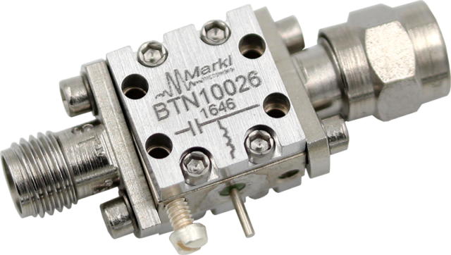 Тройник смещения, высокая мощность, макс. 26,5 ГГц, 1 А, 50 В, с разъемами (RF In=SMA-F, RF+DC=SMA-M)