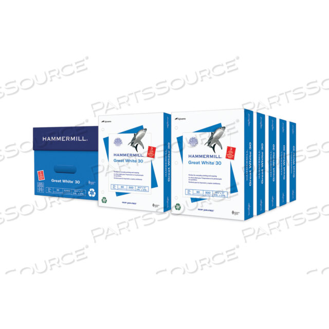 БОЛЬШАЯ БЕЛАЯ БУМАГА ДЛЯ ПЕЧАТИ ИЗ ВТОРИЧНОГО МАТЕРИАЛА 30, 92 ЯРКОСТИ, 3 ОТВЕРСТИЯ, ПЛОТНОСТЬ 20 ФУНТОВ, 8,5 X 11, БЕЛАЯ, 500 ЛИСТОВ В СТОПЕ, 10 СТОП В КОРОБКЕ