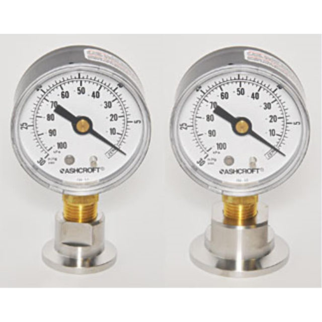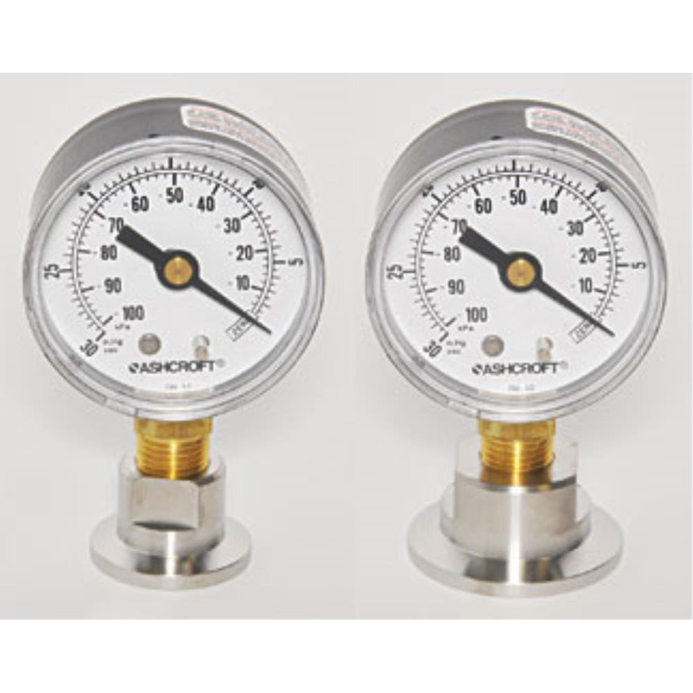 The NW/KF quick vacuum test gauge is mounted on a standard NW/KF flange and can be connected to any standard vacuum line of pump with NW/KF connection to quickly test the vacuum level. The gauge does not require any electrical connections and is intended as an indicator. The gauge has a dual scale from 0-30 inches Hg and 0-100kPa. Easy to read 50mm dial with steel housing and polycarbonate lens. The gauge is mounted on a stainless NW/KF adapter. A quick and cost-effective, dial type, test vacuum gauge. Available in NW/KF16, NW/KF25, NW/KF40 and NW/KF50.