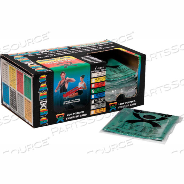 CANDO LOW POWDER PRE-CUT EXERCISE BAND, MEDIUM, GREEN, 48L STRIP, BOX OF 40