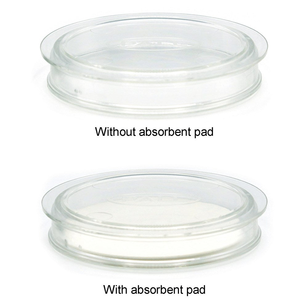 A 50 x 9mm petri dish structure that is easily opened with one hand, yet closes to a tight seal by its remarkable double rim. Tests are safeguarded until you are prepared to examine them. Humidity remains secured. When loaded with a 47mm absorbent pad, it is perfect for drying coated grids, expelling water from grids that are supporting sections.