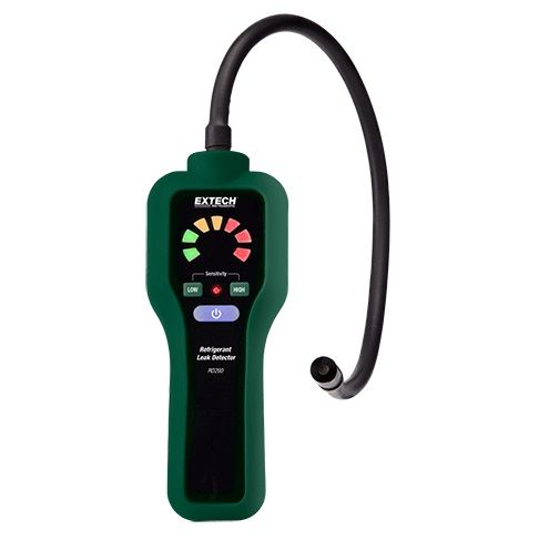 Детектор утечки хладагента Extech прост в использовании и идеально подходит для обнаружения утечек из кондиционеров и систем охлаждения, в которых используются все стандартные хладагенты. Многоцветная светодиодная полоса показывает уровень хладагента, обнаруженный RD200. Оснащен заменяемым в полевых условиях диодным датчиком с подогревом и возможностью выбора диапазона низкой/высокой чувствительности для точного обнаружения утечек. Гибкая гусиная шея 16 дюймов (406 мм) обеспечивает легкий доступ в труднодоступных местах.