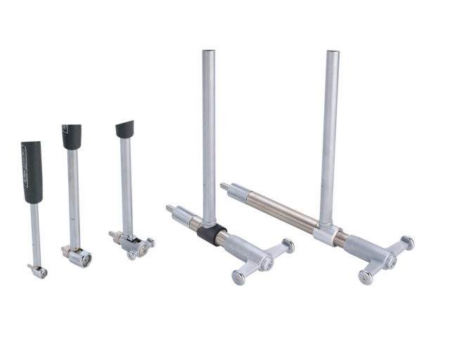 The Mitutoyo standard type bore gage is available in various ranges (metric and inch) to measure inside bore diameters with accuracy to 2µ/.00008″. The bore gage comes with interchangeable anvils to measure various bore diameters with the same gage. A pendulum guide structure improves sliding the gage for measurements while a two-point contact system detects geometry anomalies such as ovalness and taper.