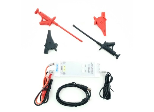 The probe is supplied through an USB connection, which makes it more portable, as almost all scopes offer an external USB port. This makes a separate power brick unnecessary. A broad collection of clamps and clips are supplied for measurements.