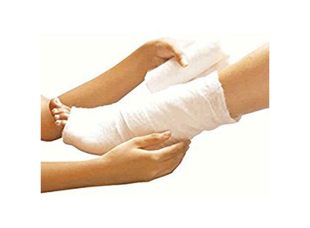 - Начинайте накладывать ортопедическую повязку от основания пальцев ног до колена по спирали с перекрытием 50%