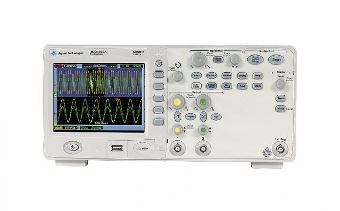 The Agilent DSO1002A provides up to 20 kpts per channel with a 2 GS/s sample rate and incorporates a bright, crisp LCD color display. Dual display and True Zoom shows your entire signal and zoomed in waveform details at the same time. The Agilent DSO1002A is equipped with 23 automatic voltage, time and frequency measurements.