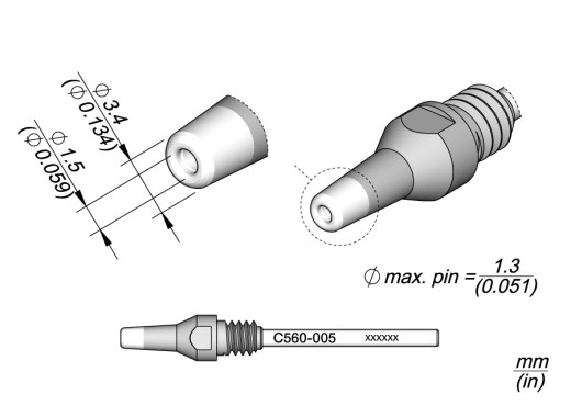 Конический наконечник, полый 1,5 мм.