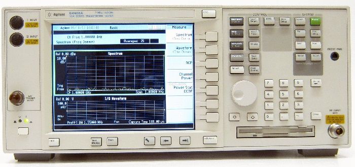 The Agilent E4406A is a communication analyzer. The Agilent Technologies E4406A vector signal analyzer (VSA) is a full-featured transmitter tester designed to meet the test needs of wireless equipment developers and manufacturers. For wireless base station, mobile transmitters and their components, the easy-to-use E4406A provides the best combination of speed and accuracy for a wide range of digital modulation analysis capability. And, with multiformat capability (W-CDMA, HSDPA, cdma2000, 1xEV-DV, 1xEV-DO, cdmaOne, EDGE, GSM, NADC, and PDC) the E4406A is the ideal, flexible choice for your production line.