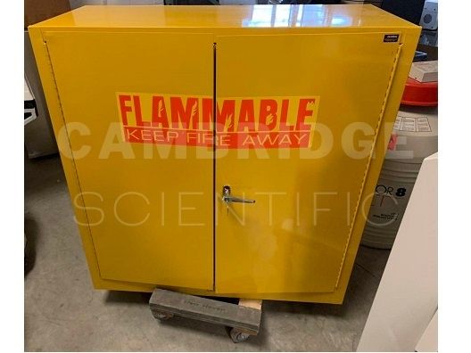 Safely houses flammable liquids, Strong, powder-coated steel construction resists chipping, No assembly required