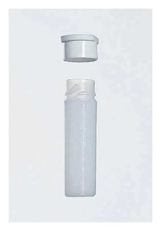 - 4 mL vial with six polypropylene push caps connected by plastic string