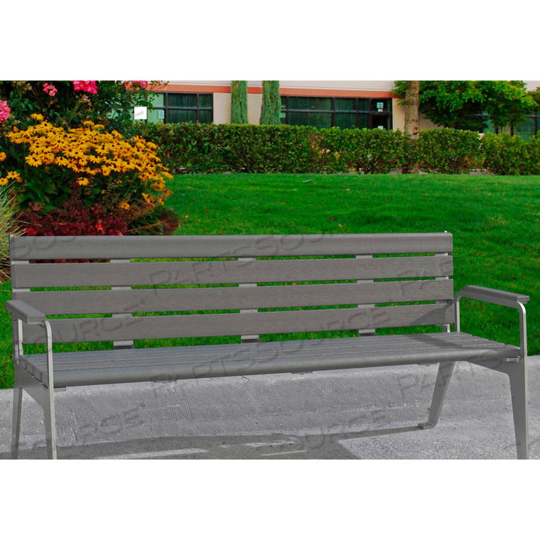 СКАМЬЯ PLAZA FROG FURNISHINGS ИЗ ПЕРЕРАБОТАННОГО ПЛАСТИКА 6 ФУТОВ — СЕРЕБРИСТАЯ РАМА С СЕРЫМИ ПЛАНКАМИ