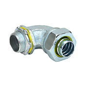 Соединитель RACO, влагонепроницаемый, 90-градусный, стандартный размер 3/4 дюйма, тип резьбы 3/4 дюйма NPT, гальваническое цинковое покрытие. Для использования с электрическим кабелепроводом Liquatite. В комплекте уплотнительная шайба и контргайка.