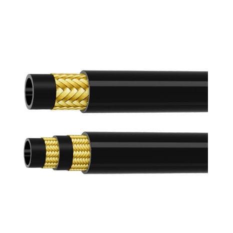 ГИДРАВЛИЧЕСКИЙ РЕЗИНОВЫЙ ШЛАНГ С ПРОВОЛОЧНОЙ ОПЛЕТКОЙ Для подачи гидравлических жидкостей или жидкостей на водной основе. КОНСТРУКЦИЯ: Изготовлен из превосходной маслостойкой и устойчивой к старению резины. Армирование – стальная проволока, плакированная медью. Чехол доступен в черном цвете с оберточной или гладкой поверхностью. Шланг изготовлен в соответствии со стандартом DIN EN 853 ST и стандартом SAE J517 100RA.