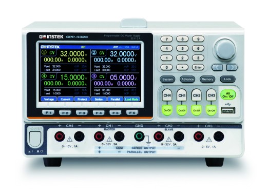 Блок питания GPP-4323 относится к серии GW-Instek GPP и имеет 4 канала. Первые два канала имеют выходное напряжение 0-32В и выходной ток 0-3А. Третий канал имеет выходное напряжение 1,8/2,5/3,3/5,0 В и выходной ток 1 А, а четвертый канал имеет выходное напряжение 0–15 В и выходной ток 0–1 А.