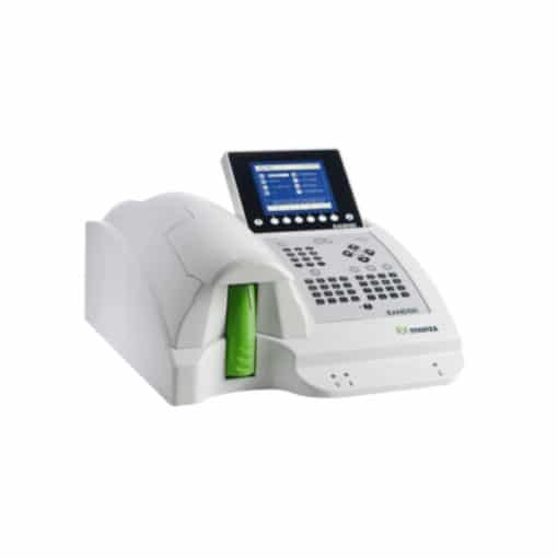 Product Description The Roche Cobas 111ISE is a sleak, compact and easy-to-use open reagent benchtop chemistry system, equipped with an ISE module, specifically designed for low volume users boasting 32 assays and a maximum throughput of 100 tests per hour. One Year Warranty Specifications Assay Methodology: Absorbance Photometry, ISE Auto Dilution: No Auto Sample Handling: No CLIA Complexity: Moderate Configuration: Bench Top Depth: 55 cm (22 in) Direct Sample (STAT): Yes Height: 48 cm (19 in) Maintenance Free Electrodes: Yes Maximum Throughput: 100 tests/hour Number of Assays: 35 On-Board Refrigeration: Yes Optical Source: Halogen Lamp Optical System: Bi-chromatic Mono-chromatic Patient Sample Capacity: 8 Point Of Care: No Power Supply: 110V-220V Private Label Source Model: Private Labeled by: Hitachi Reagent Capacity: 27 Reagent Delivery: Automatic Pipetting Reagent System: Closed Reagent Type: Liquid Sample Cycle Time: 600 (sec) Sample Input Closed Tube: No Sample Input Type: Sample Tubes Sample Cups Sample Size Max: 500 &mu,L Sample Size Min: 50 &mu,L Sample Types: Plasma, Urine, Whole Blood, Serum Series: Cobas c111 Standby Mode: Yes Test Method: Light Absorbancy Water Consumption: 3 (L/hour) Water OnBoard Supply: No Water Requirement: Yes Weight: 35 kg (77 lb) Width: 72 cm (28 in)