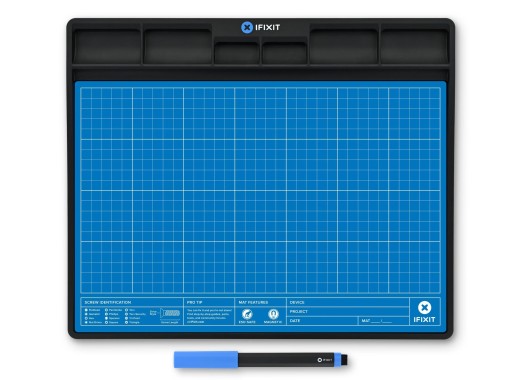 Repairs are sometimes confusing and difficult. This magnetic mat from iFixit is the next generation of magnetic project mat and it makes tasks a lot easier. Parts can easily be sorted on the mat or in the easy-access sorting bins. Thanks to the included 0.5 mm pen and a writable surface it is possible, during repairs, to keep notes, which prevents a large number of errors. The stiff backing and raised lip allows safe transportation of even the most complex projects and the mats can stack on one another to store multiple projects. Everything is ESD-safe to keep sensitive electronics protected.