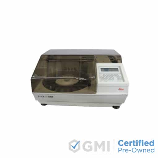 Product Description Reliable and reproducible IHC tissue staining results time after time Patented computer-controlled pipettor micro-spray delivery Rotating carousel slide and reagent system Sprays the reagent onto the tissue section for complete coverage Uses a minimum amount of reagent The Leica ST5050 is a fully automatic immunostainer that guarantees convincing and reproducible IHC tissue staining results time after time. A truly economical instrument, the ST5050 immunostainer is perfect for the small to high volume laboratory. Using a minimum amount of reagent, this Leica ST5050 staining system has a patented computer-controlled pipettor for micro-spray delivery combined with a rotating carousel slide and reagent system. The Leica immunostainer sprays the reagent onto the tissue section to ensure complete coverage. Other features of the Leica ST5050 stainer include easy operation, compact footprint, and water bath heating system to facilitate staining. Specifications Composition Plastic Function Immunology Power Usage 190-210 W Displays LCD, alarm, power Alarm Signals Audible alarm, error Programmable Water Usage Yes Number of Programs Possible 10 Cycle Time Yss Cycle Agitation Yes Manual Cycle Stop Yes Substitution (Slider Carriers) Yes Power 100-110 VAC, 220-240 VAC Waste Disposal 1 hose connection Dimensions 32 x 67.5 x 50.5 Weight 88.2 lbs Power Failure UPS option Slide Capacity 20 Staining Posts Cleaning Mild detergent Incubator Temperature Different selectable temperatures Warm-up Time 10 min Cycle Processing Method Rotating tray, spray